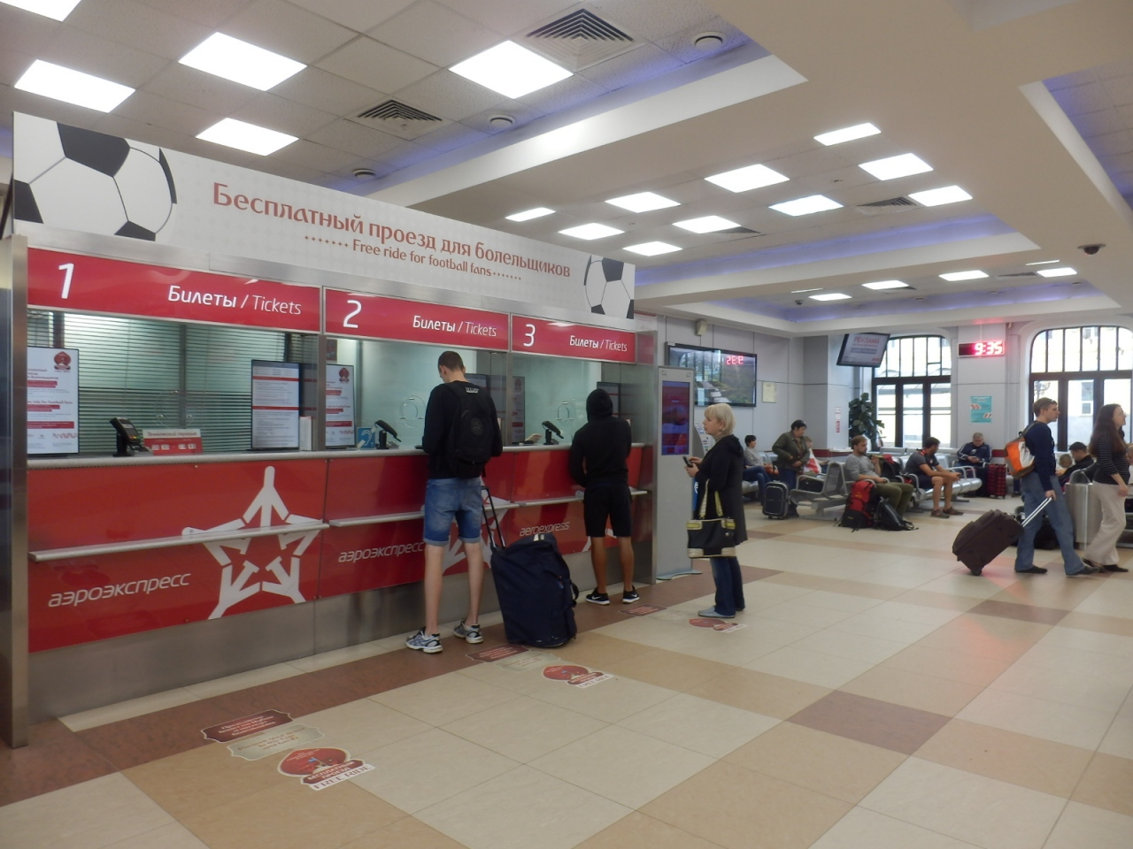 アエロエクスプレスのチケット販売所は鉄道駅の駅舎とは別にありました。駅の東側で、地下鉄2号線の出口のすぐ隣です。チケット販売のカウンターの他、待合室のような椅子も並べてありました。