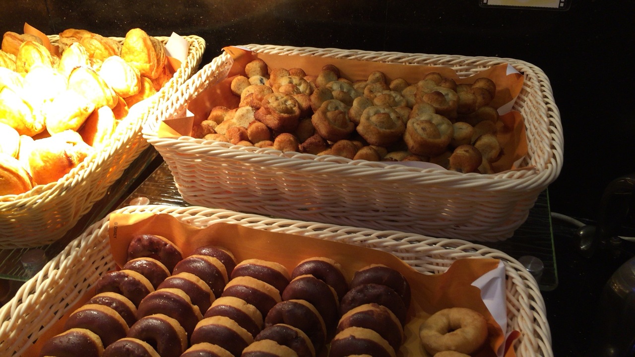 ミッキーのワッフルやエッグタルトがとても美味しかった。ドリンクはコーヒー紅茶のみテーブルサーブです。