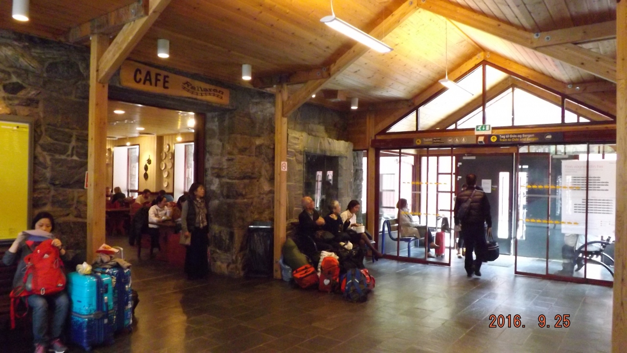 この時期、ベルゲン鉄道のミュールダール発オスロ行は、午前中に1本、午後に2本あるだけです。フロム鉄道から乗り継ぐため、ダイヤは考慮して組まれているのだと思いますが、それでも13:15着で14:06発と、小1時間はありました。