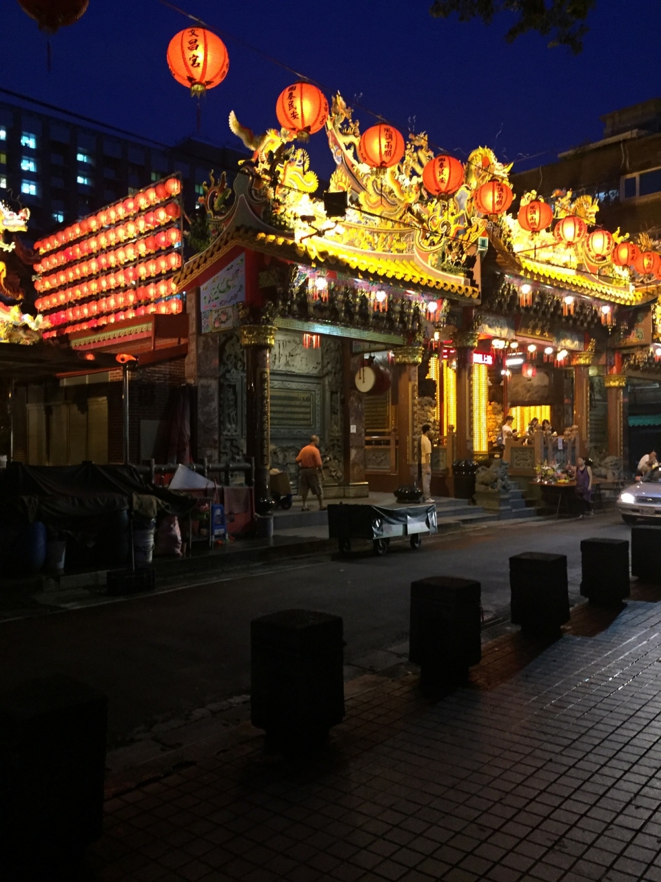 朝市の通りにあるので昼間見慣れてると思いますが、人通りもまばらになった暗い通りに浮かび上がるように建っています。非常に美しく厳かな気分になります。20時頃に通り掛かりましたが、地元の方がお詣りしていました。