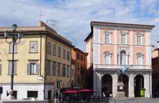広場沿いにはかつての貴族のカジノとして知られるピンク色の建物があり、北側に続くストレット通りにはポルティコが続き、歴史を感じさせるエリアです。
