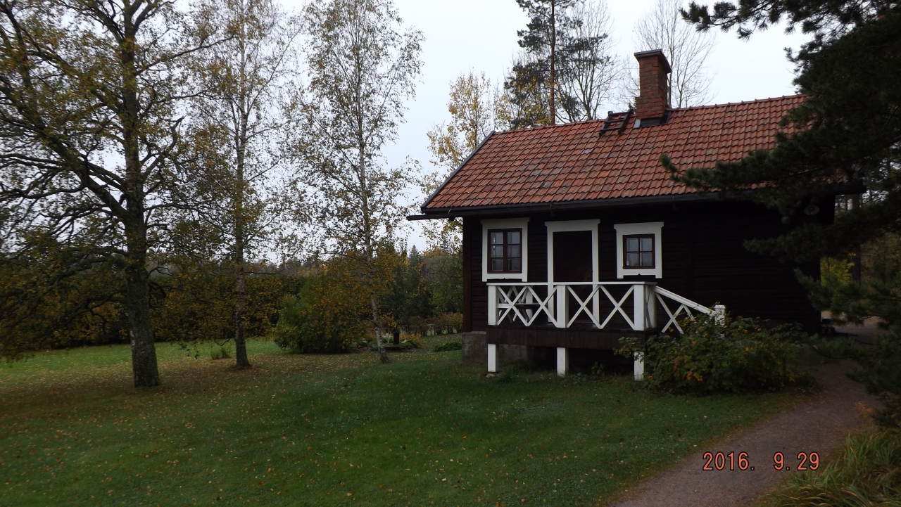 「あまたのスファン」の一人として、5時半起きしてバスで来たのはいいのですが、門が閉まったまま。案内を見ると開館は10時とのこと、まだ8時40分なのに。門の前の掲示板を見ながら、うろうろと待つこと10分くらいで掃除人風のおばさんがやって来ました。言葉がわからないので拝み倒したら、一緒に中に入れてくれました。また、フィンランド人が好きになりました。カフェや部屋の中には入れませんでしたが、二人のお墓や二人が手掛けた花畑やリンゴの木などが見れました。