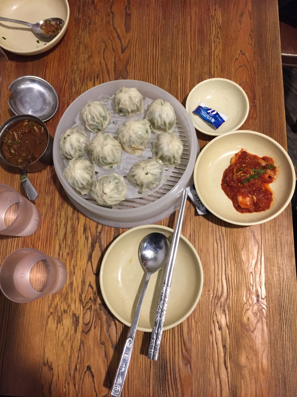 ソラリア西鉄ホテル明洞に宿泊した時に、ホテルの真向かいだったので立ち寄りました。昼食としては随分遅めの3時前ぐらいに訪れましたが、ほぼ満席で、それでも回転が早く、すぐに席に案内されました。やや臭いが強いですが薬味をたっぷり付けた方が美味しいですね。