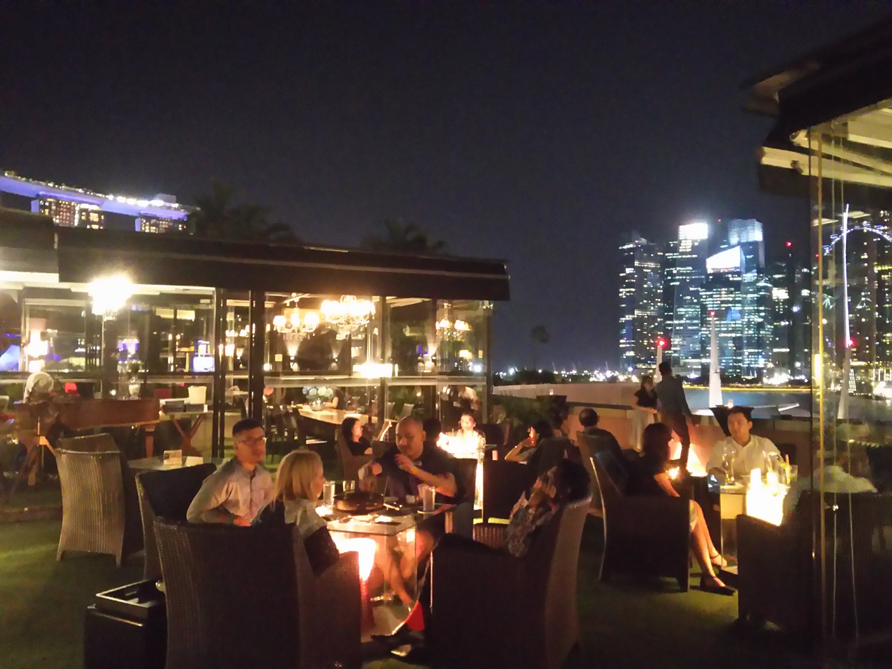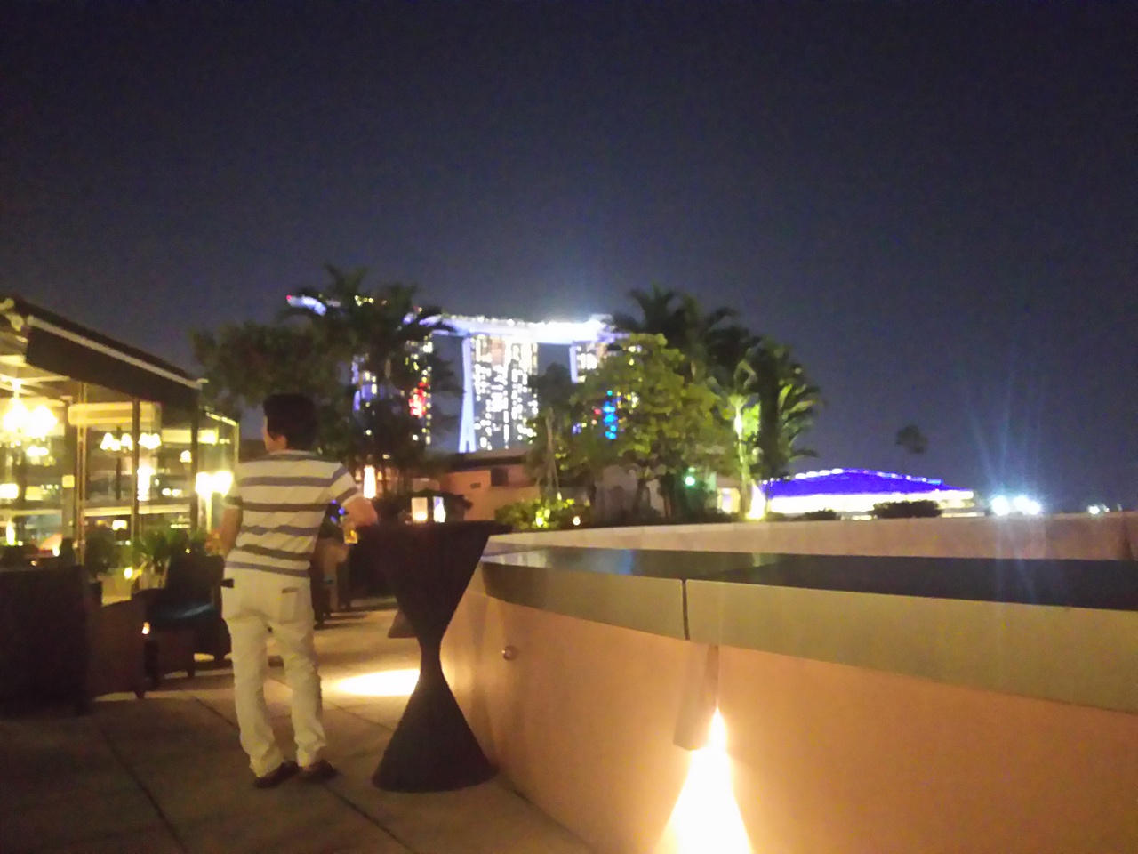 マリーナベイサンズが美しく望むことができるオルゴというバーで夜景を見ながらお酒を飲みました。この店は知る人ぞ知ると言った感じで知らないと店への入り方も難しいです。苦労しても行く価値あり。素敵な風景、雰囲気が待ってます。ガラスケースの様な席もあり、ガラスケース席はクーラーが効いているようでした。あまりの良さに滞在中に2回も行ってしまいました。