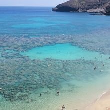 前回車で行ったときに、駐車場が全然空いていなかったので、行きはUBERでワイキキ市内から向かいました。お金を払って、ビデオを見て、下に降りる前に必ず飲み物など買ったほうがいいです。下に売店などがないので。あと結構水中で足にけがしたりするのでビーチシューズなども持って行ったほうがいいです。もちろん魚は間違いなくたくさん見れます。浅瀬でも肉眼でみれるので、泳げない人でも楽しめるかと。