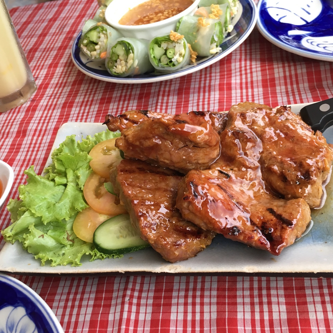 △ 牛焼肉で頼みましたが、どこが牛肉なんだか??豚肉みたいな味、甘だれ味、十分食べられますが、美味いレベルには入らないと思いました!(この後、滞在中何軒かの店に入りましたが、みんなイマイチで、結局比較してみると、クメールキッチン美味いかも、、って結論になってしまいました)。。