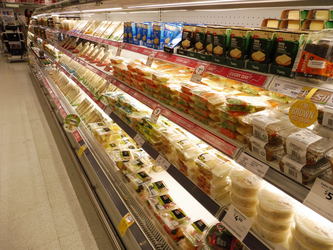 シドニー中心部に有るワールドスクエア、このビルの地下1階に豪州大手のスーパー・コールスが入店しています。
