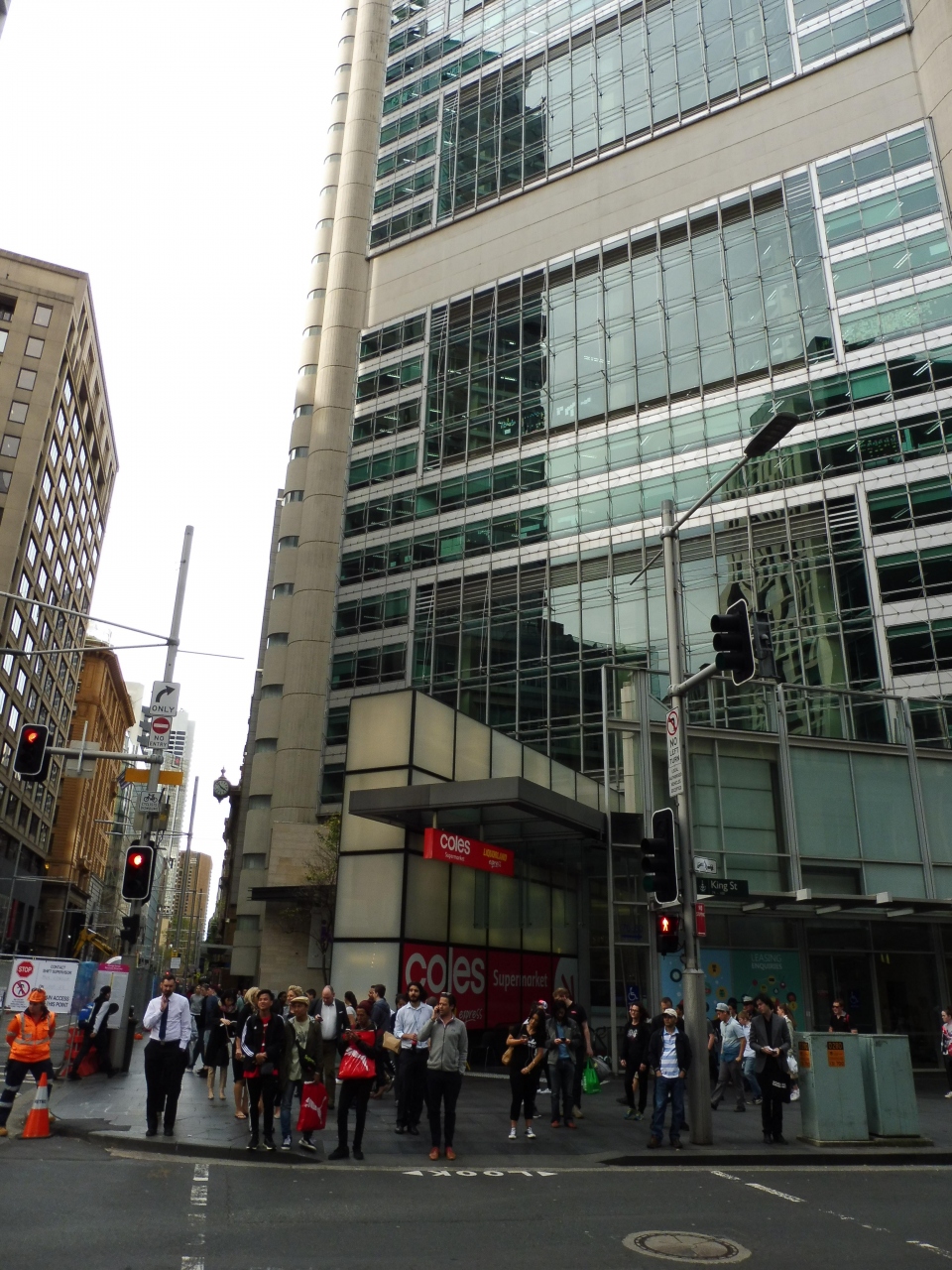 シドニーのビジネス街で歴史的建造物が建ち並ぶマーティンプレイスから南へ1ブロック行ったジョージストリートとキングスストリートの角の交差点下に有る豪州大手のスーパー・コールスです。
