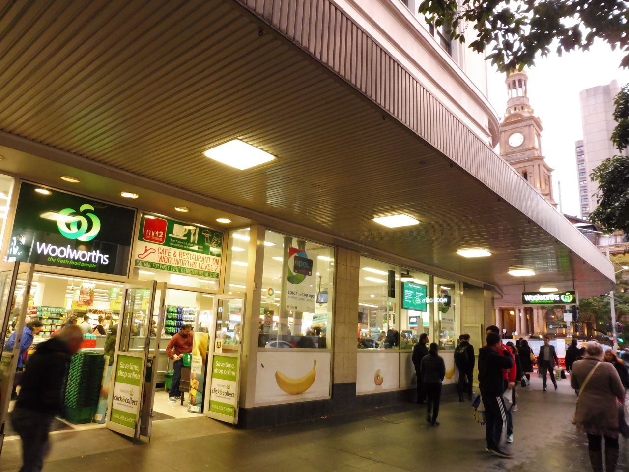 シドニーの中心部・タウンホール(シドニー市役所庁舎)の目の前に有る豪州スーパー大手のウールワースです。