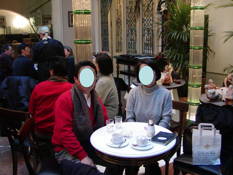 ウイーンの老舗菓子店で、日本にも出店がある”デメル”で、お茶しました。店内は年代を感じる木の室内で、ケーキ、ビスケットがガラスケースに並んで、目移りしましたが、やはり、有名な”ザッハー”を頂き、クッキーの詰合せをお土産に購入しました。