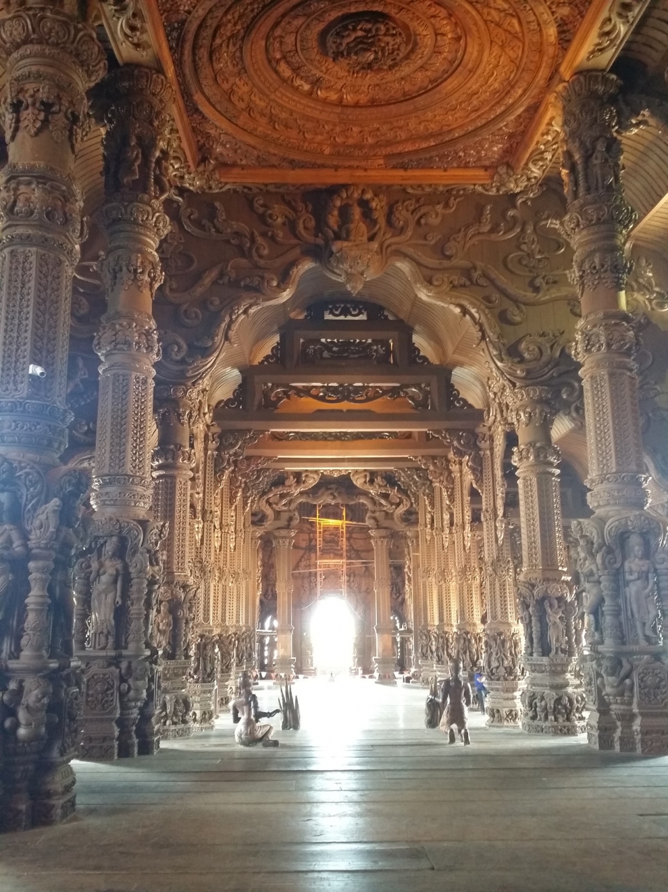 500バーツの拝観料は正直高い!!と思いましたが、木造建築は素晴らしく、内部は天井まで彫刻で埋め尽くされていて圧巻です!