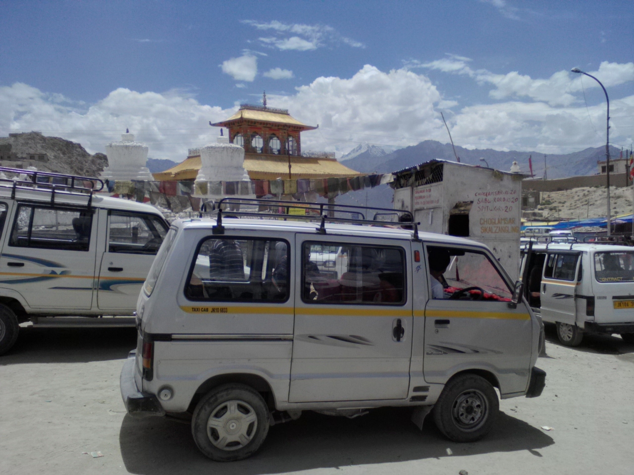 レーからチョグラムサルへはヴァン(Van)と呼ばれる軽ワゴン車の乗り合いタクシーで簡単に行けます。乗り場はオールドバススタンド(メインバザール南端からバススタンドに行く途中にある大きなゲートの手前)。所要約10分、20Rs。ゴンパのある幹線道路沿いのシェイやティクセ、スピトクなどに行くヴァンに乗り換えるためには地元民がチョグラムサルと呼んでいる所よりもう1km先にある終点のザンパと言うマーケットエリア行ったほうがいいです。ヴァンのスタンドがありドライバーなどに行き先を伝えればどのヴァンに乗ればいいか教えてくれるはずです。