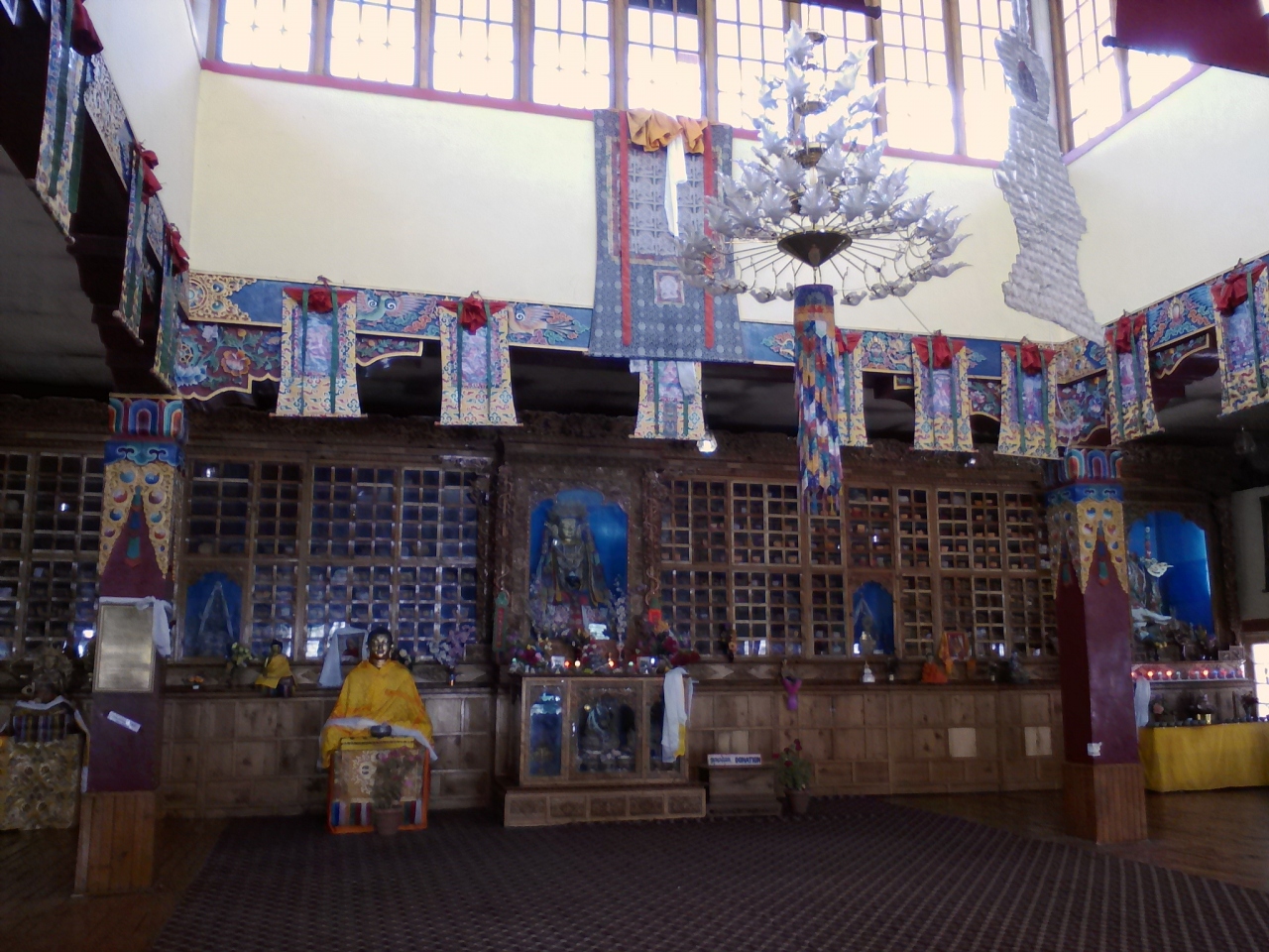 町の中心にあるチベット寺院。以前は東側のメインバザールからも入れましたが閉鎖。現在は北側の通りと南側のフォートロードに入口があります。せっかく行くなら本堂内部も見たいもの。私が訪れた時は閉まっており、外にいた僧侶に尋ねると午後2時に開くと言う。あのー、もう2時過ぎてるんですが…。すると3時と言われました。その辺は結構アバウトのようです。3時過ぎに再び訪れるとしっかり開いていました。内部の写真撮影は可です。見学無料。