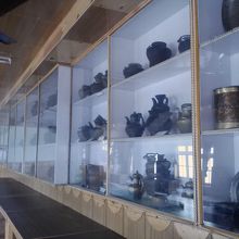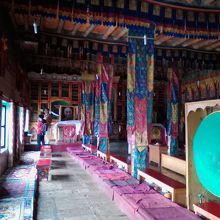 まずは本堂。いくつかの仏像が安置されていますが照明が抑えてあるので暗くてよく見えず…。向かいにある経を読むお堂では写真を撮ることができました。ミュージアムにはチャイを淹れる鍋などの調理具が展示されており、他とは違う展示品でなかなかおもしろかったです。