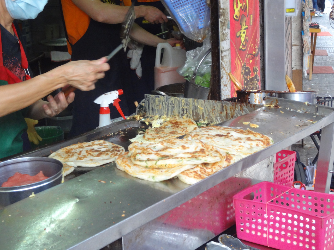 永康街散策の途中で立ち寄りました。10人ほど行列していましたが、天板で焼いてるお店の人の手さばきに感心しながら見ていたらあっという間に自分の番になりました。玉子入りが買いたかったのでメモに「加蛋」と書いてお店の人に見せたらすぐにわかってくれました。小籠包食べ歩きのあとで、あまりお腹が減っていなかったのですが美味しくいただきました。