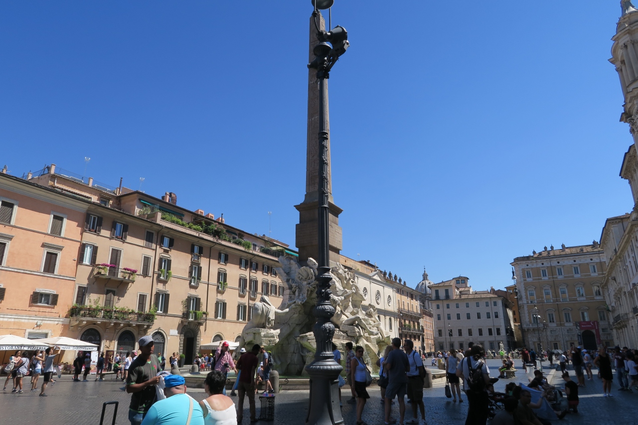 名前の通り、世界の4大河を擬人化した躍動感ある彫像で装飾された噴水です。