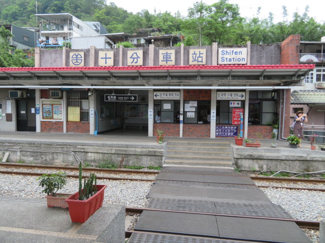 人気の平渓線に乗車、瑞芳駅から多くの乗客が乗りましたが殆どの人が十分駅で降りました、駅からすぐの十分街が人気で十分駅も多くの人が乗り降りしています。