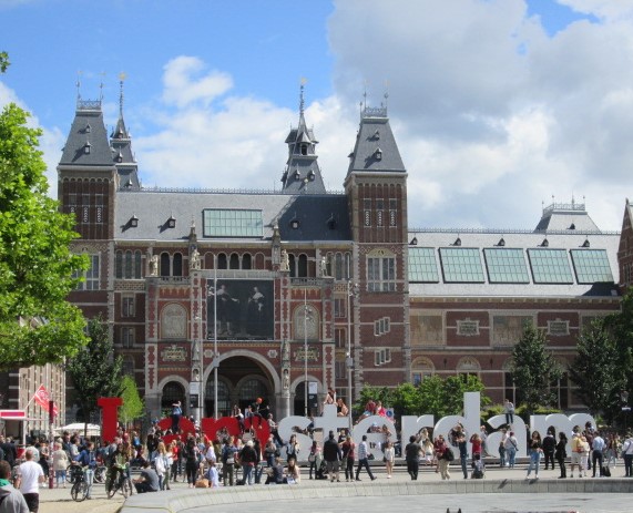 国立美術館の前に〔I amsterdam〕のモニュメントがあり、多くの人がモニュメント周辺で楽しんでいました。