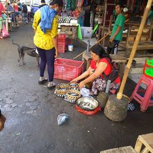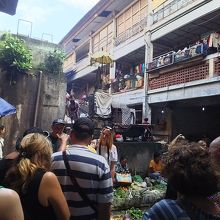 朝と昼の2回行きました。朝は様子見で。昼は買い物で。昼はめちゃ混んでました。そこが市場の醍醐味なんですけどね。ローカル向けの野菜を売る屋台、供え物の花を売る屋台。見ていて楽しいです。暑い国なのでときどき売り物の匂いに苦しくなることもありますが、その国のカオスな部分なので、しょうがないかと。