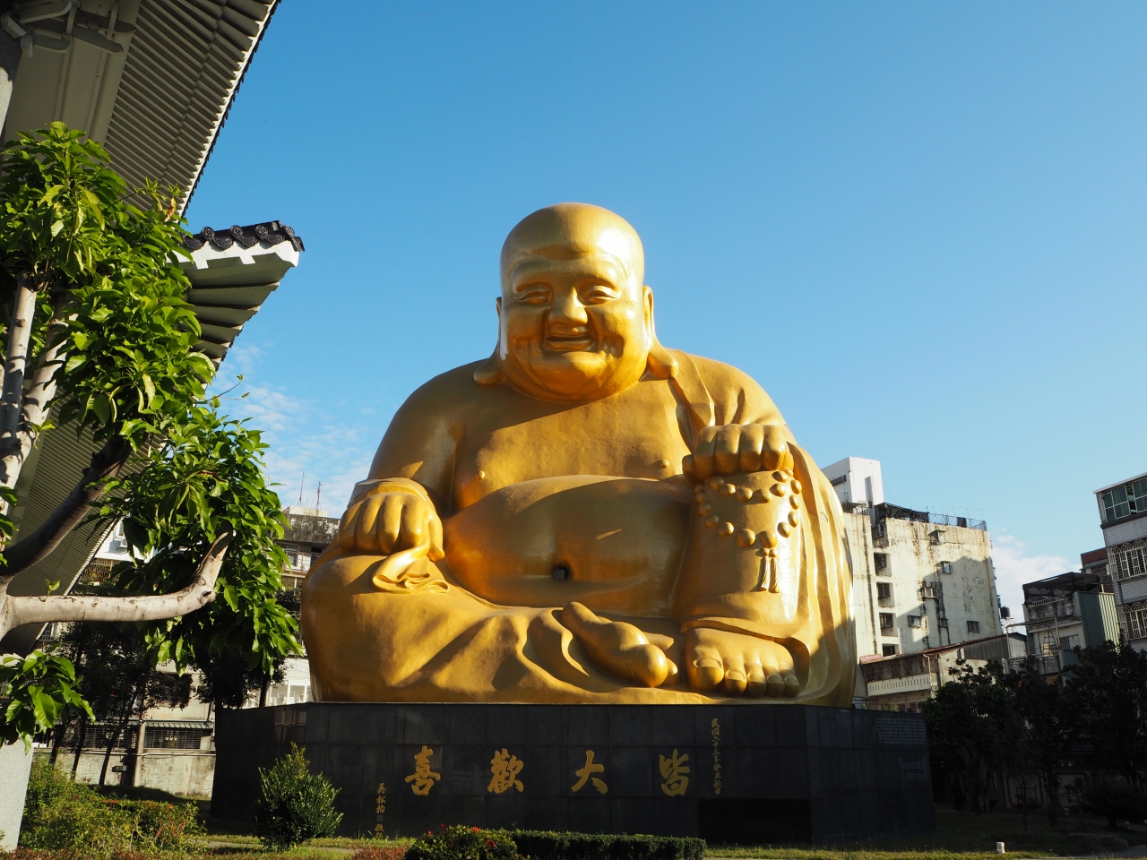 台中に 約30mの高さ なんと大きな !見上げるばかりの 黄金色に輝く大仏様がいらっしゃる 宝覚寺があります。 正式には 宝覚禅寺と言われてます。 インパクト抜群! ’笑う門には福来る’ 幸福が ずんずん迫ってくる インパクト! 迫力満点、! ご利益をいただいて帰りました。(2015.1台湾15)