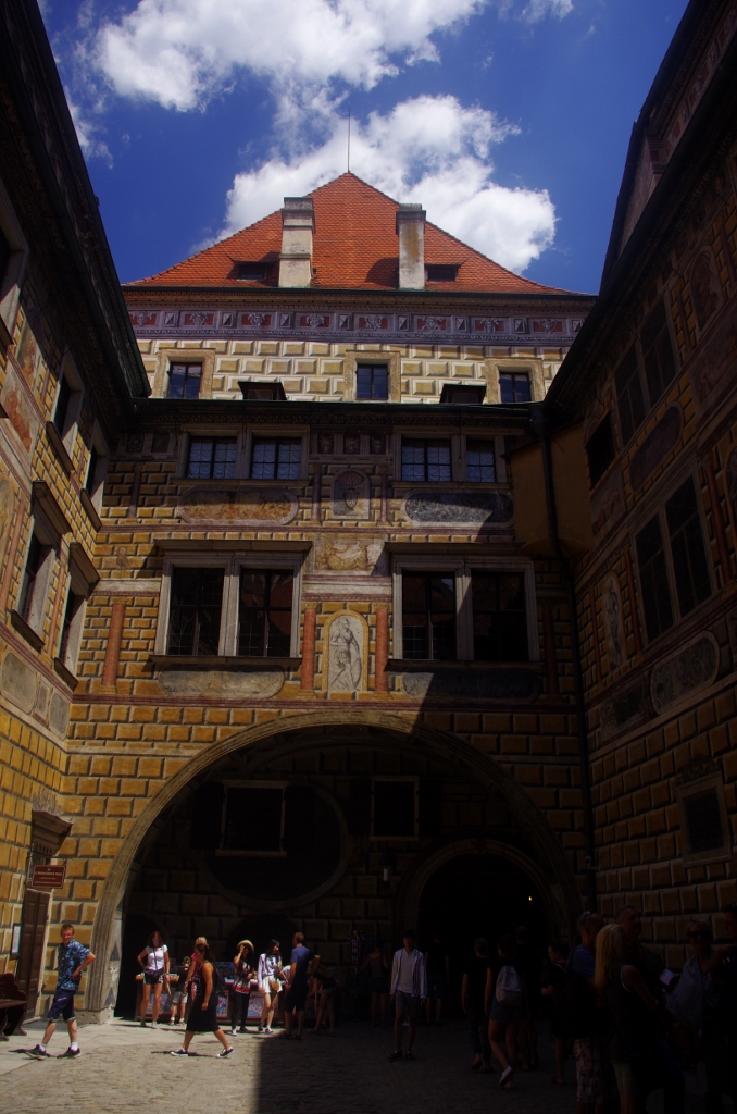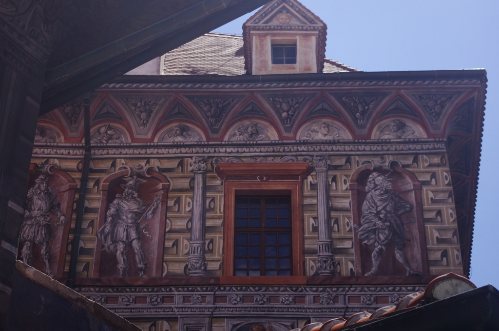 壁がだまし絵になっています.町の建物にも同様のだまし絵が施してありますが,彫刻風などより細密でバリエーションに富んだものになっています.