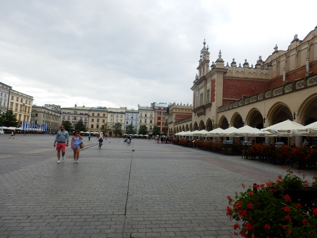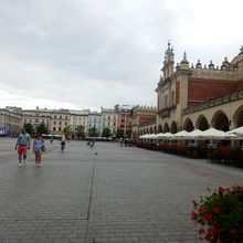 織物会館を中心とした周辺一帯がこちらの中央広場です。広場に面したレストランではテラス席が設けられていましたし、広場では花なども売られてました。