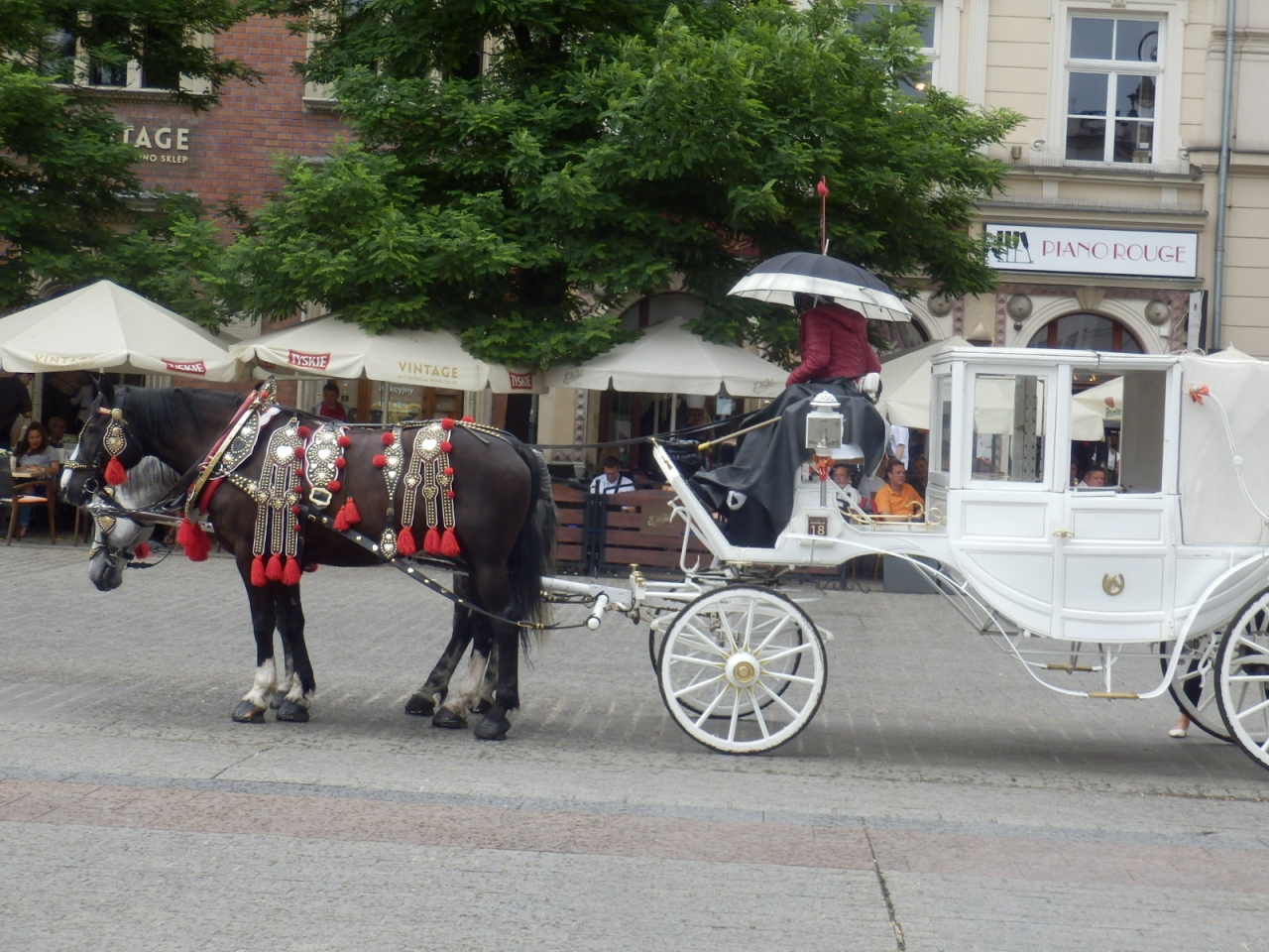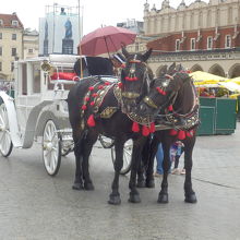また、綺麗な飾りをまとった馬が列をなして、何台も馬車が通り過ぎました。馬車に乗っていたのは中世のようなドレスを着た女性で、フォトジェニックでした。