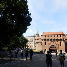 旧市街の北側の門、フロリアンスカ門を抜けると、目の前にこちらが見えました。レンガ造りの円柱型の建物で、昔は砦だったそうです。今は緑豊かな公園にあって、外観も可愛らしいので、砦というよりも公園の施設の一部のようにも見えました。