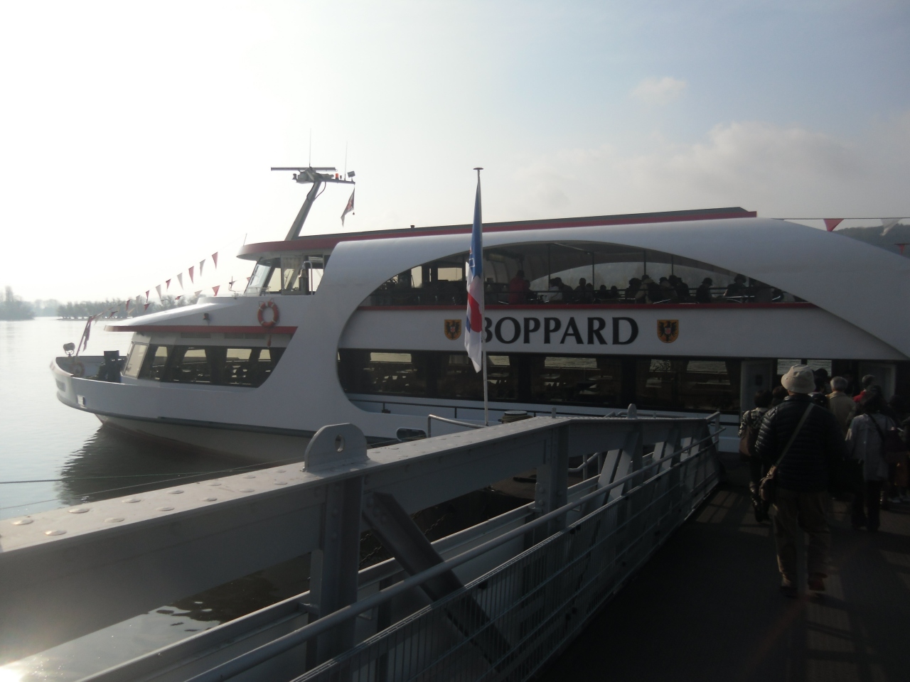 ライン川クルーズの始発のリューデスハイムの船着き場で、ここから乗船して、ここから、ザンクトゴアに下りました。悠々としたライン川を下る船は、心地良く、船内で食事、喫茶もでき、特に乗船中のワインは美味しかったです。