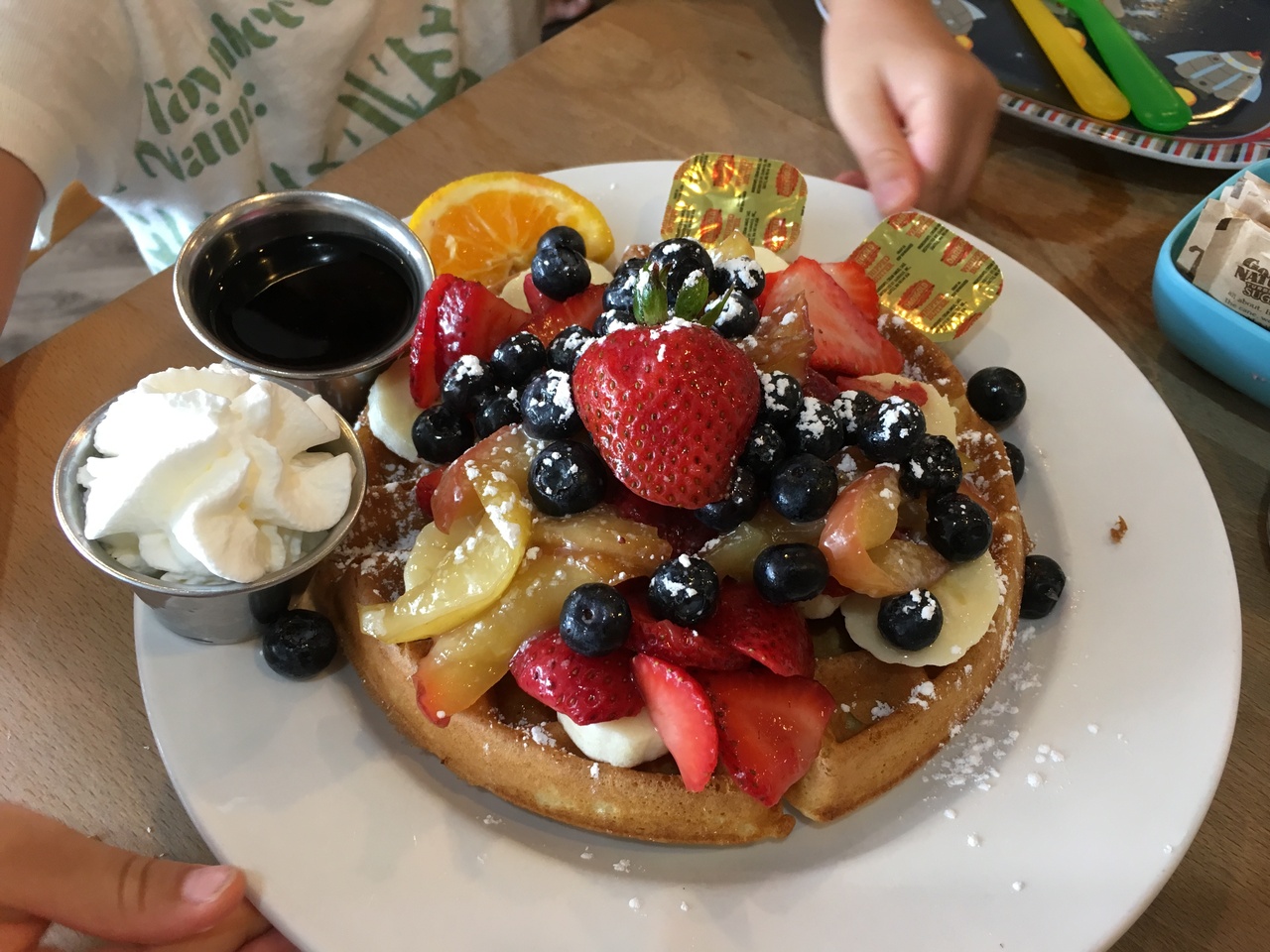 果物大好きな3歳の息子。ガイドブックのフルーツ山盛りワッフルを見てこれ食べたい!!!ということで、願いを叶えるために訪れました(^^)