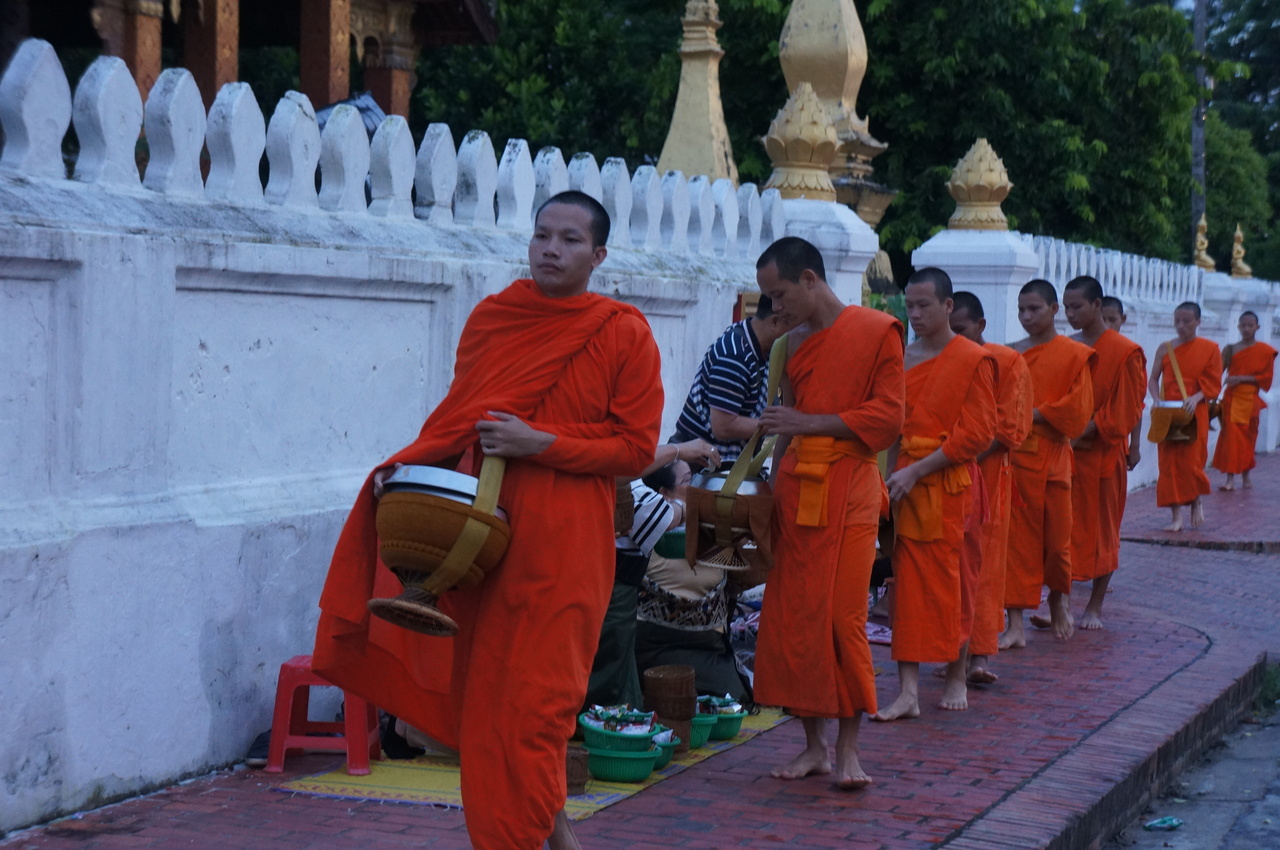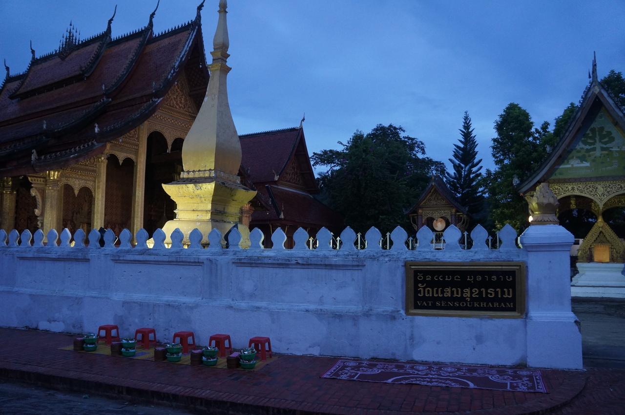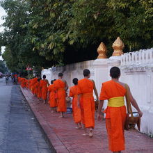 メイン通りに面していて、朝、お寺の前で托鉢が行われていていました。