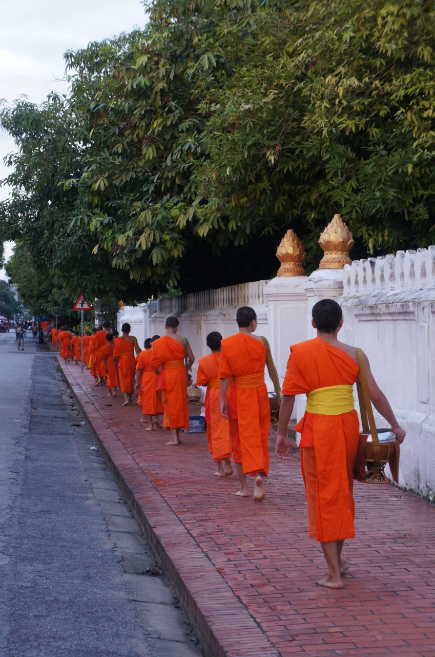 近くには複数のお寺があり、路上から、托鉢の様子を見学することができます。