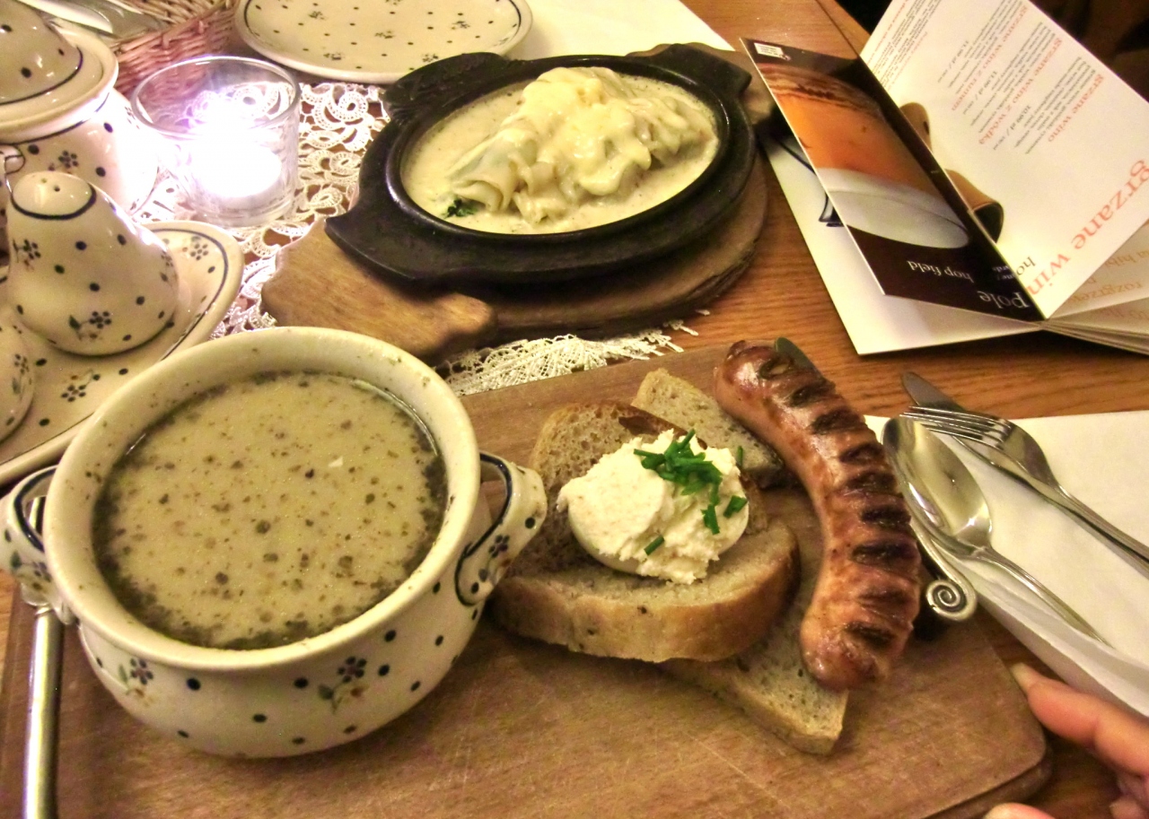 旧市街にも何店舗かありますが、結構混み合っていました。メニューは写真入りで、種類が豊富なので、観光客にも入りやすいと思います。このお店のピエロギは、私達にはイマイチでしたが、ジュレックやソーセージなど、おいしくいただきました。ボリュームがあるので一度にたくさんオーダーしない方がいいと思います。