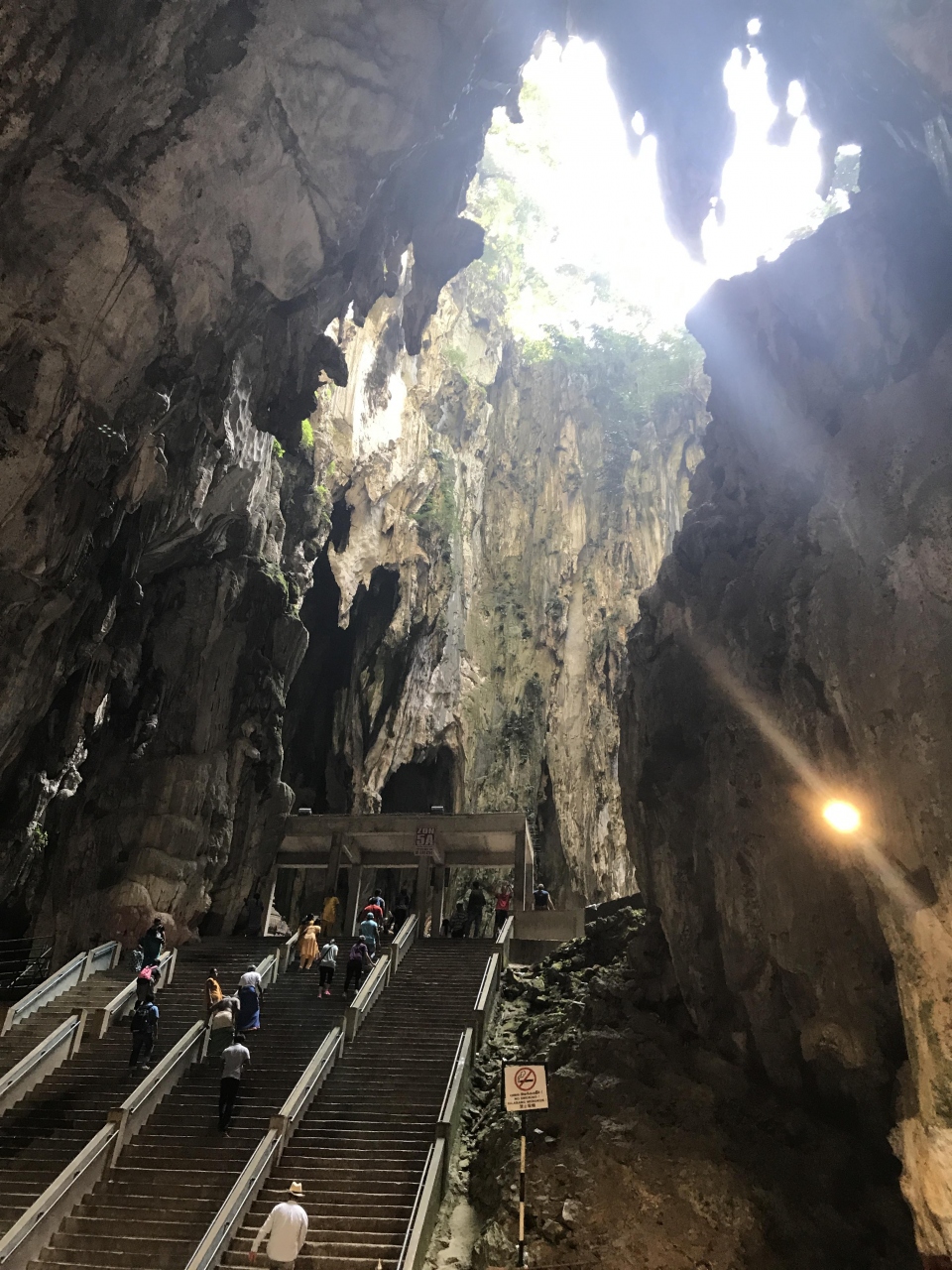 電車とタクシーで行くと、ガイドブックが言うほどには遠くない場所です。クアラルンプールに行くならぜひ立ち寄りたいところ。洞窟の奥に寺院があってわくわくします。電車の本数が少ないのが要注意ですが、スマホにタクシーアプリ入れておけばタクシーでもそれほどはかかりません。