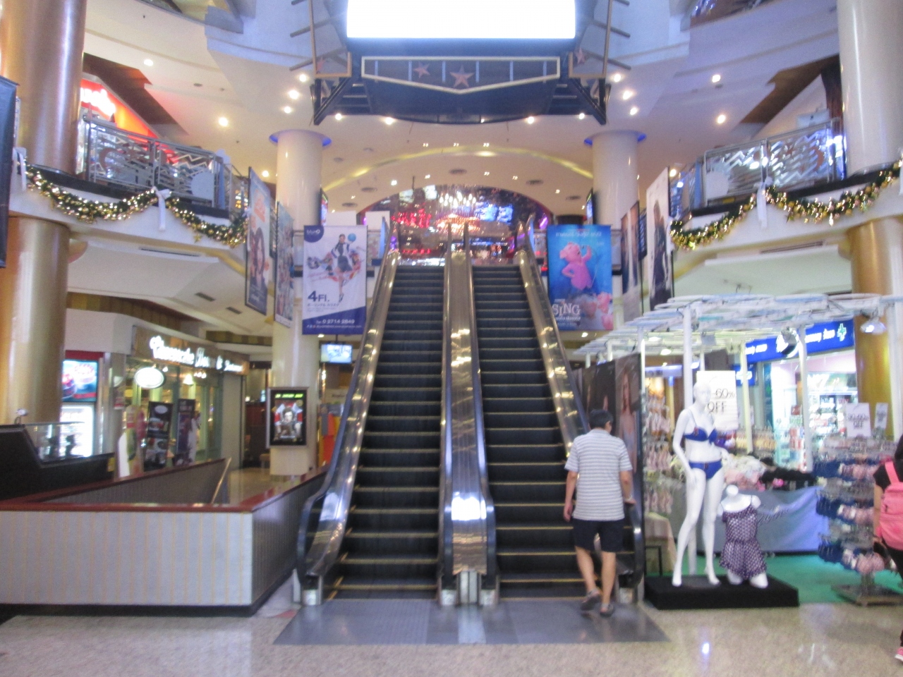 クリスマスの時期にメジャーシネプレックススクンビットに訪問しました。店内にはクリスマスのきれいな飾りがあり、関連セールを行っていました。11月に訪問したときは、プミポン国王のご逝去に際して、街全体が自粛ムードで暗い感じでしたが、1カ月が過ぎて少し明るい感じに戻ってお祝いムードになっていました。