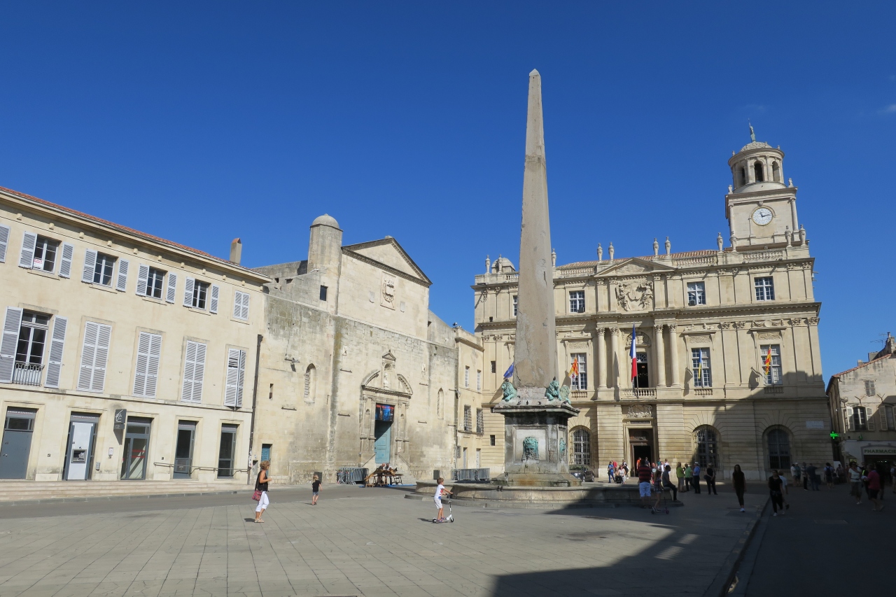 アルル市街地にある広場の一つ。ここを取り囲むように、観光の目玉でもある、回廊が有名なサン・トロフィーム教会や地下に古代フォーロム地下回廊がある市庁舎などが立っています。広場の中央には噴水もあり、いつも観光客とのんびり憩っている地元の人でいっぱいです。