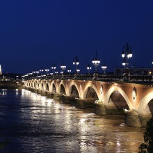 ホテルから水鏡に向かってガロンヌ川沿いを歩いていると、アーチの橋げたが美しいこの橋が見えてきました。橋を渡って対岸に行くには、橋が長すぎて断念しましたが、今から思えば途中まででも行ってもよかったかもと思います。夜のライトアップもとてもきれいでした。