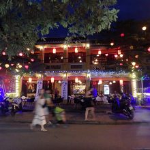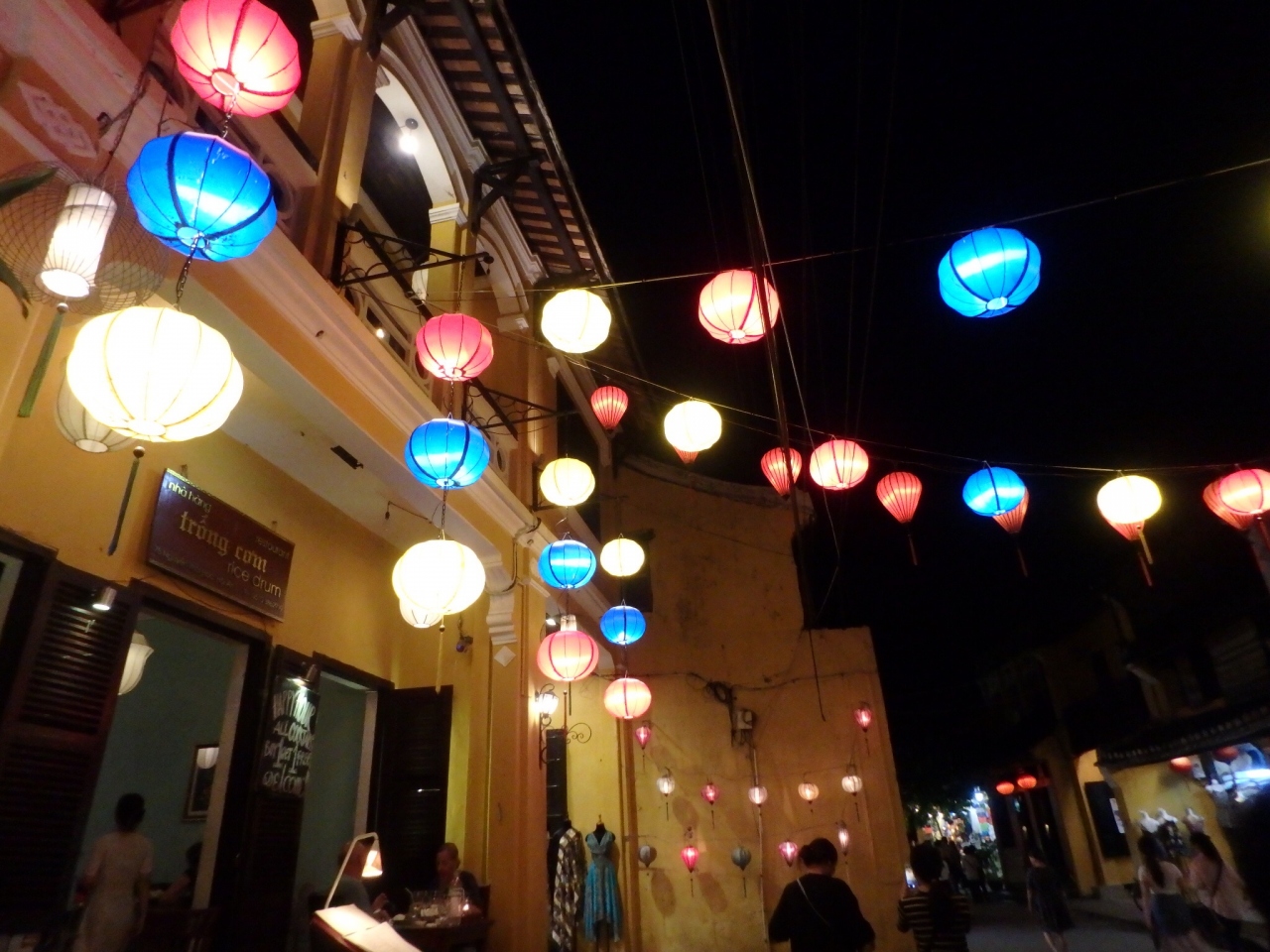 旧市街にはたくさんのお店が立ち並び、ランタンの明かりはもちろんのこと、