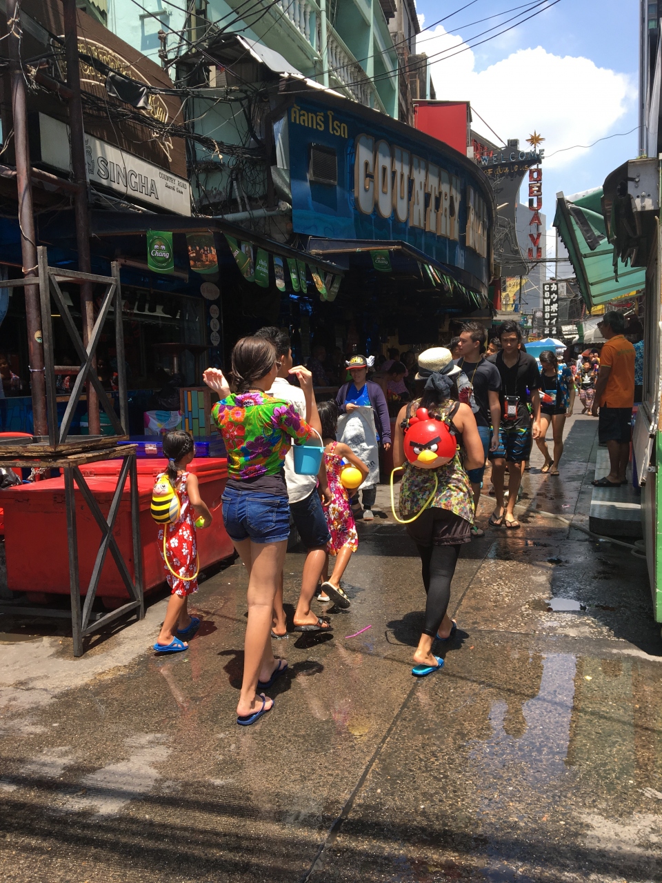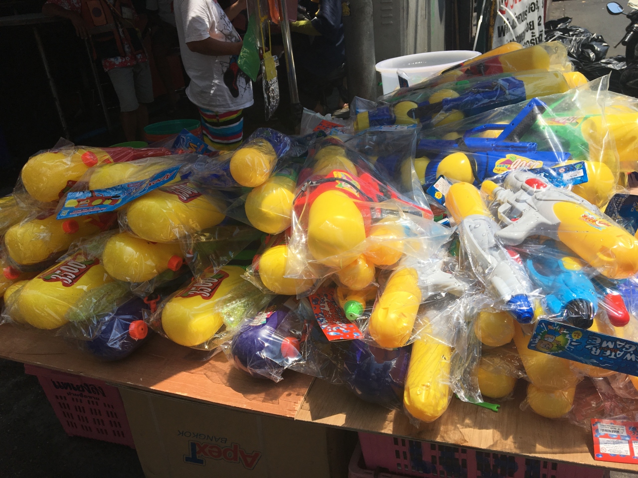 悪臭がひどく、昼間でも敬遠したくなりますが、ソンクランの時だけはいつもと様相が違いました。海外からの旅行者も小さな子供も、みんな水鉄砲を抱えてチューチュー水の掛け合い。ソンクラン恒例の水かけ祭りは、ここでも賑わっていました。
