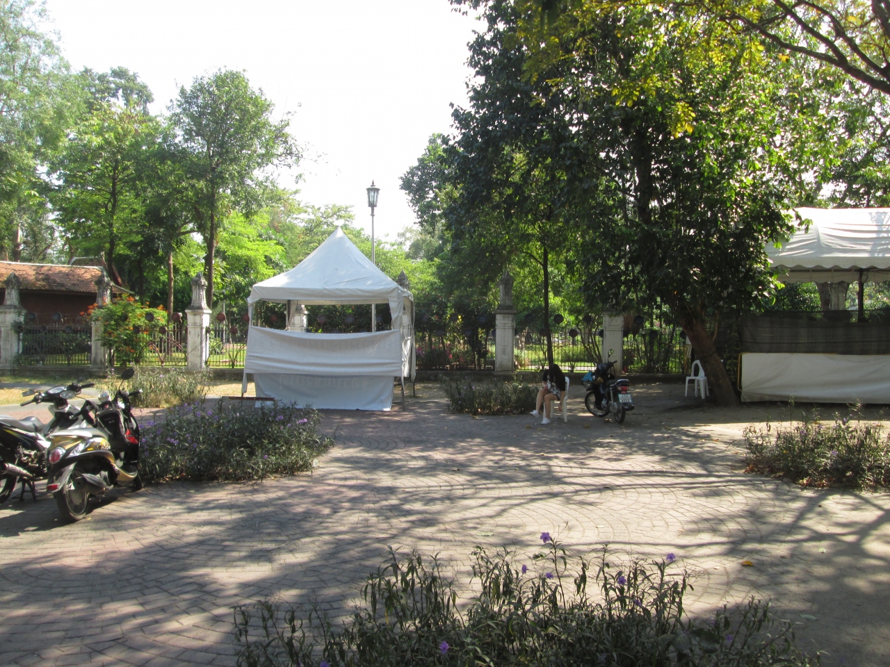王宮、ワットプラケオ、サナムルアンでは一般弔問や葬儀イベントを行っており、タイ人がたくさん来訪していました。王宮周辺では、車両の進入に制限があり、サラーンローム公園の王宮側から、この区間に入る際にIDチェック(パスポート)と手荷物検査がありました。手荷物は1人1人のかばんの中身をチェックし、バッグの小さいポケットも確認されました。