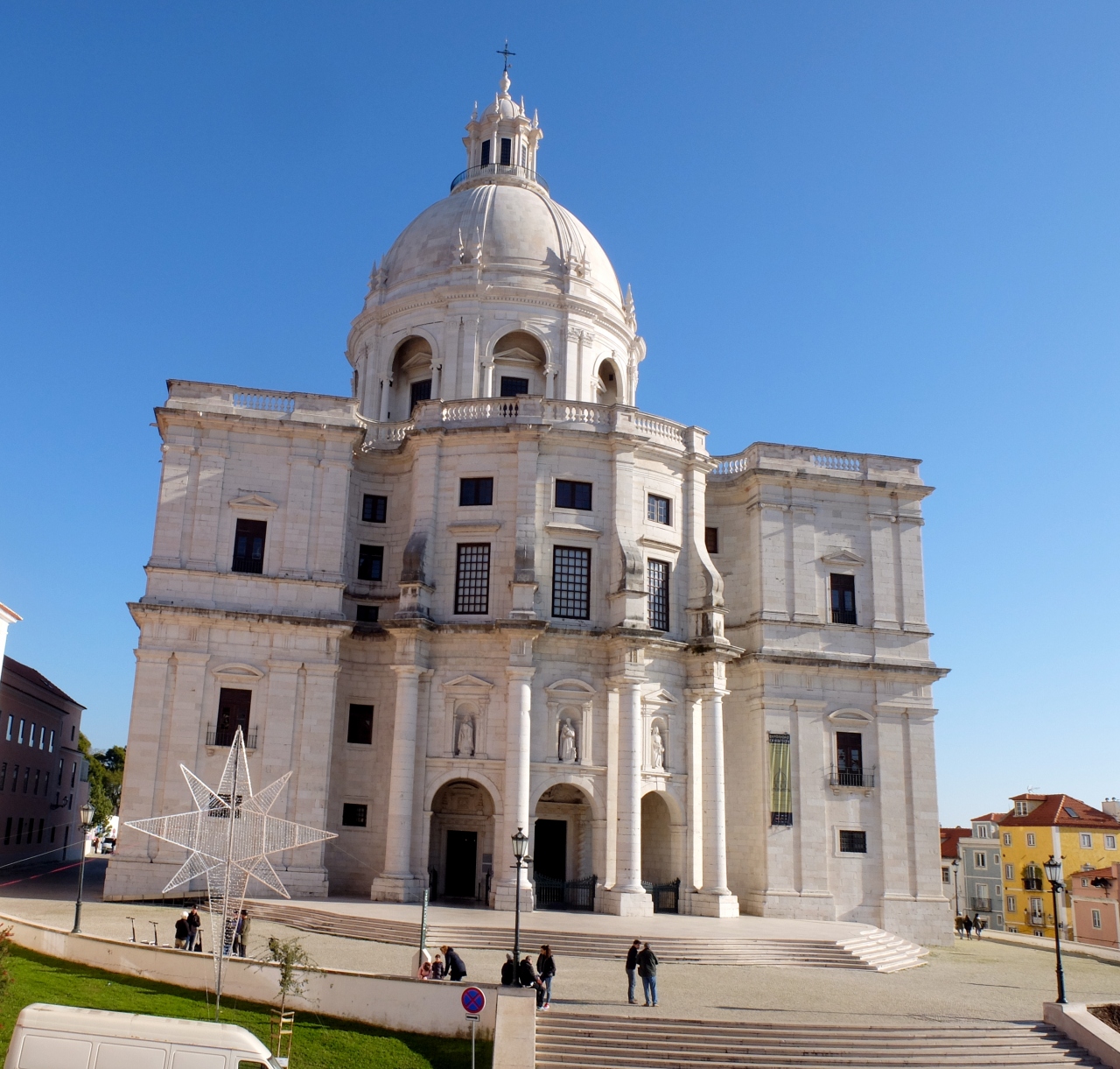 伝統的なカソリック教会.ふたつの鐘楼がある白い教会,とても素晴らしかった.2009年に来たときは修道院も見たが,今回はパス.パンテノンはその名の通りポルトガル史上活躍した人物を祀る.教会の外観だが,中は記念館のようだ.塔の周りの屋上からはリスボンの街が見渡せる.冬の陽光!?に照らされた街は美しい.このクチコミリストにこのSanta Engracia教会(パルテノン)は乗っていないのでここで紹介した