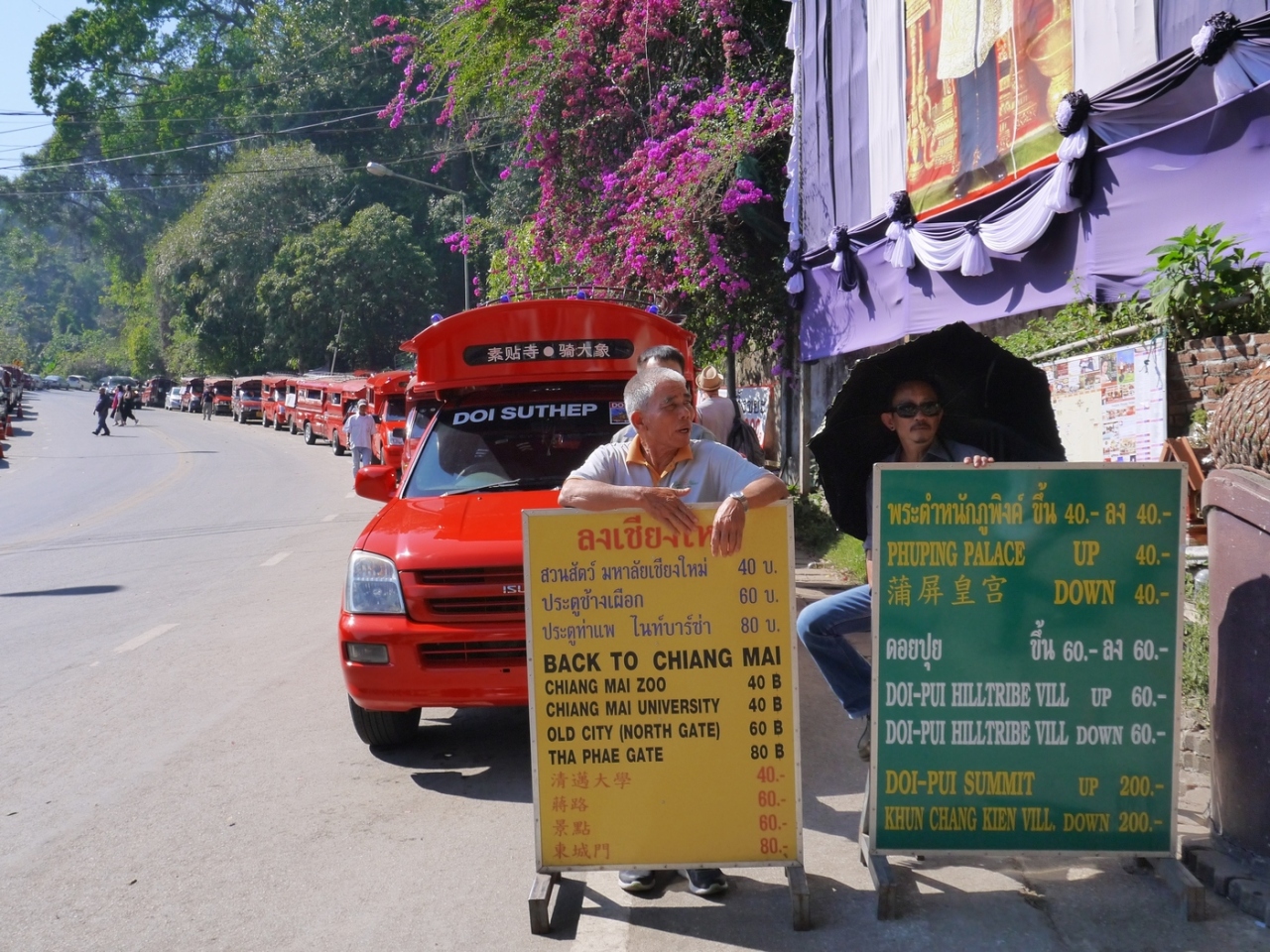 チェンマイでは観光地巡りにソンテウがとても便利です。