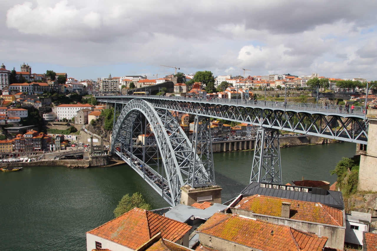 ドン・ルイス1世橋といえば、ポルトで一番の観光スポットではないでしょうか。エッフェルの弟子により建設された二重構造橋で、上層はメトロ、下層は自動車が走っています。どちらも歩いて渡ることができ、ガイドブックなどでは歩いて渡ることを勧めていますが、私は行きはメトロ、帰りはバスで渡りました。もちろん上層の方が景色はいいけど、高所恐怖症の人には無理です。無理して歩かなくても、橋を渡った場所から十分に絶景は楽しめます。