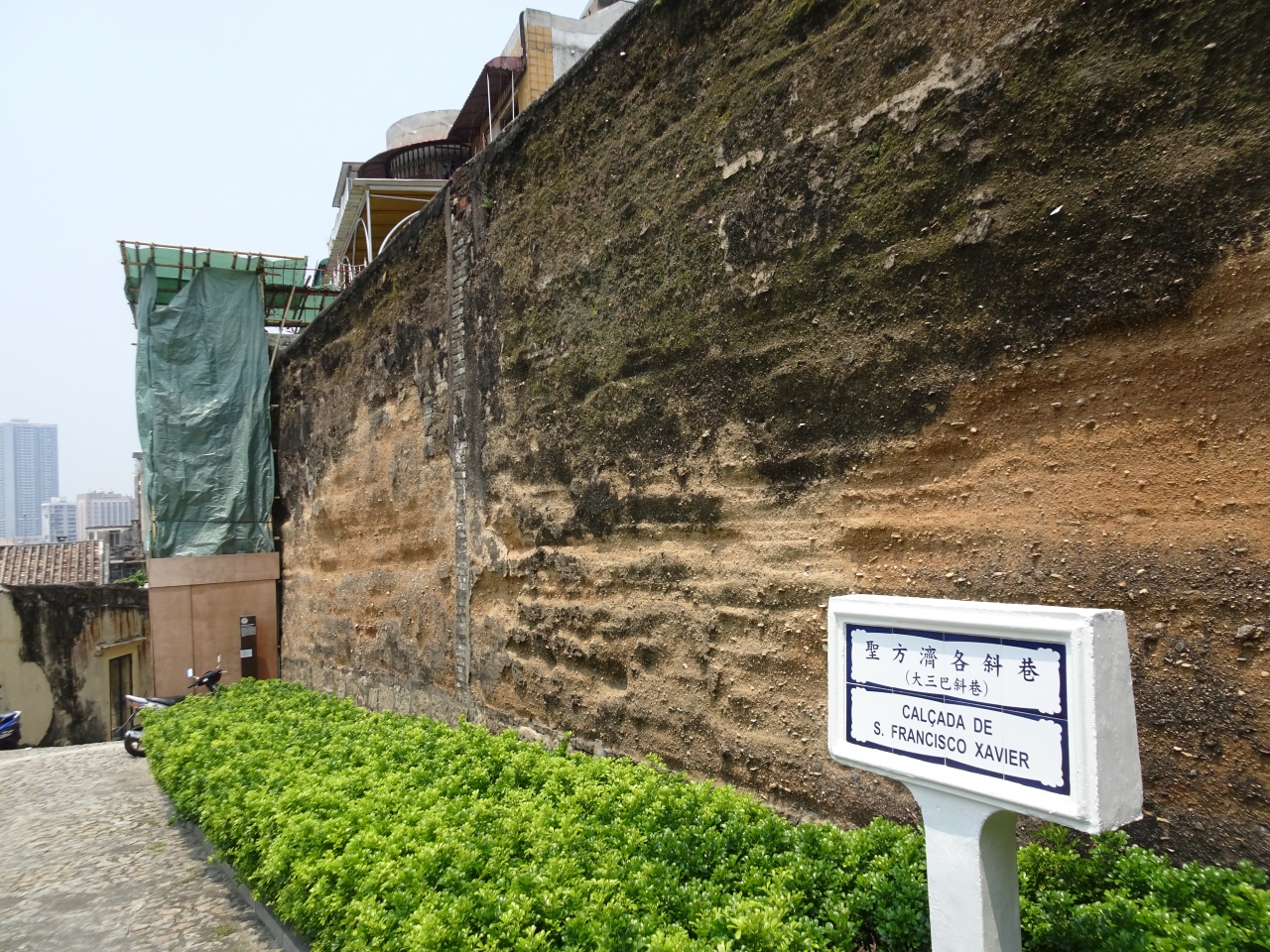 聖ポール天主堂跡のすぐそばにある城壁の一部です。オレンジ色の壁だけが残り、色あせているのが歴史を感じさせてくれました。これといって壁以外に見どころがないのが寂しいところではありますが、ポルトガル時代の貴重な遺産だと思います。