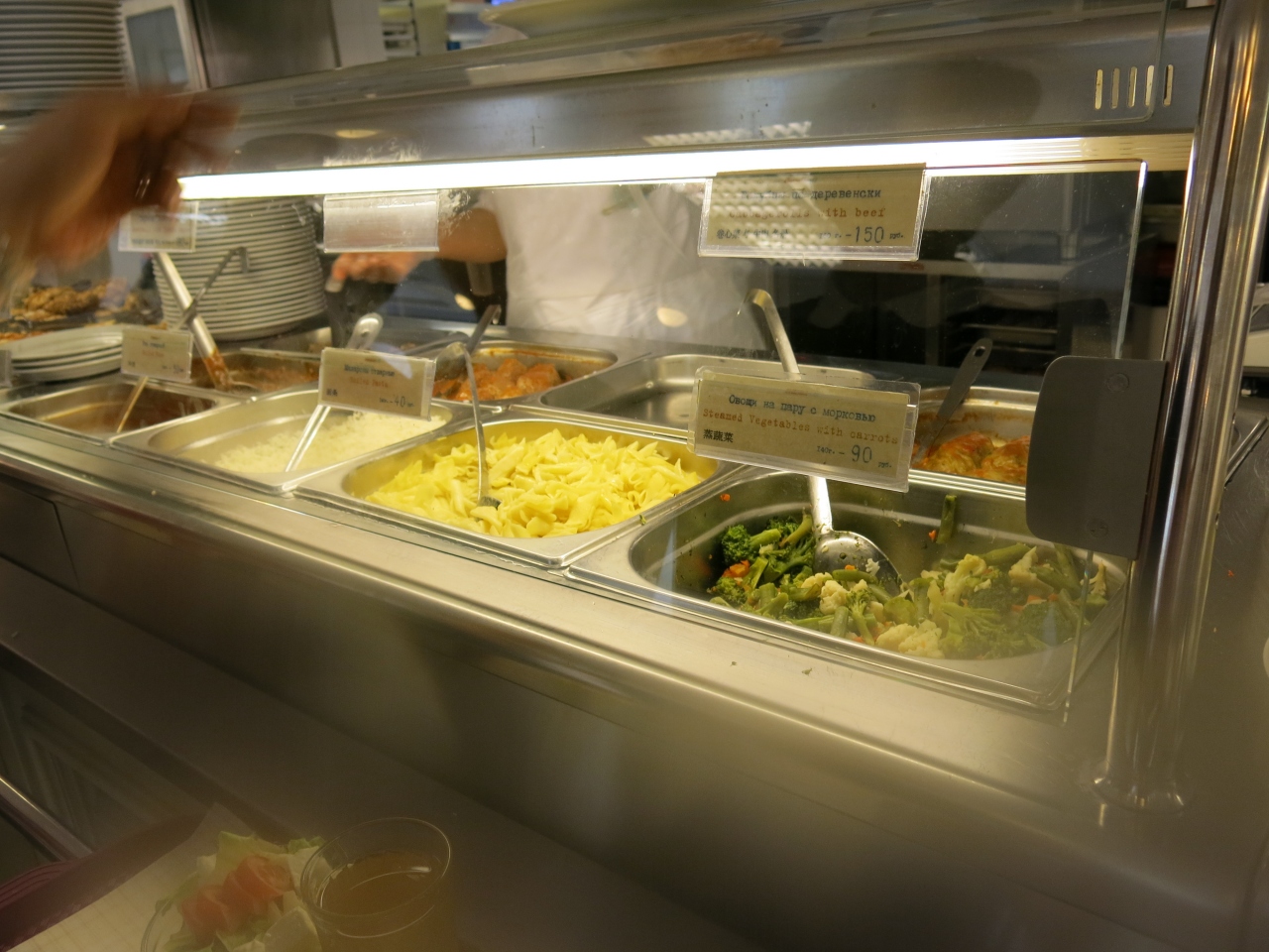 レッドスクエア周辺で歩き疲れてどこで何を食べるかと考えなくても自分で好きなのを取って会計するだけなので楽です。
