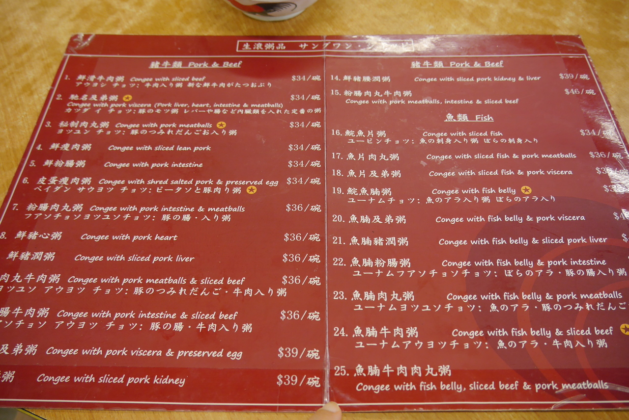 種類の多いお粥の中から豚肉とピータンのお粥を注文。