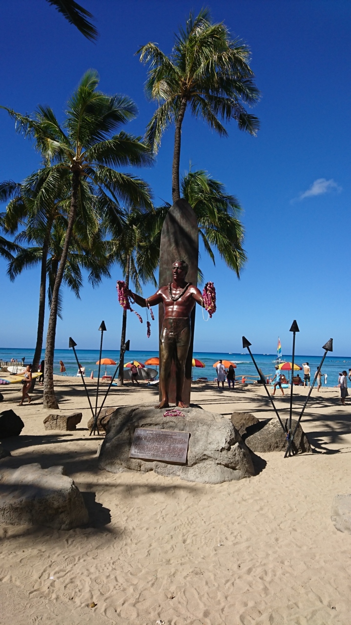 彼の像がワイキキビーチになければこんなには有名な像にはならなかったと思いますがワイキキビーチの景色とあいまって素敵な景色です。
