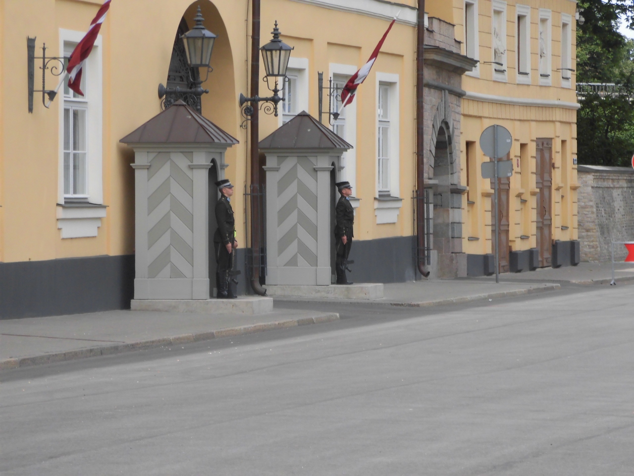 最初にお城が造られた1330年から1562年まではドイツ系のリヴォニア騎士団の居城、その後は、ポーランド、スウェーデン、ロシアと主が変わります。1922年に独立後初の大統領府になりますが、またソビエト支配下。現在は大統領府に戻って、衛兵が立っています。