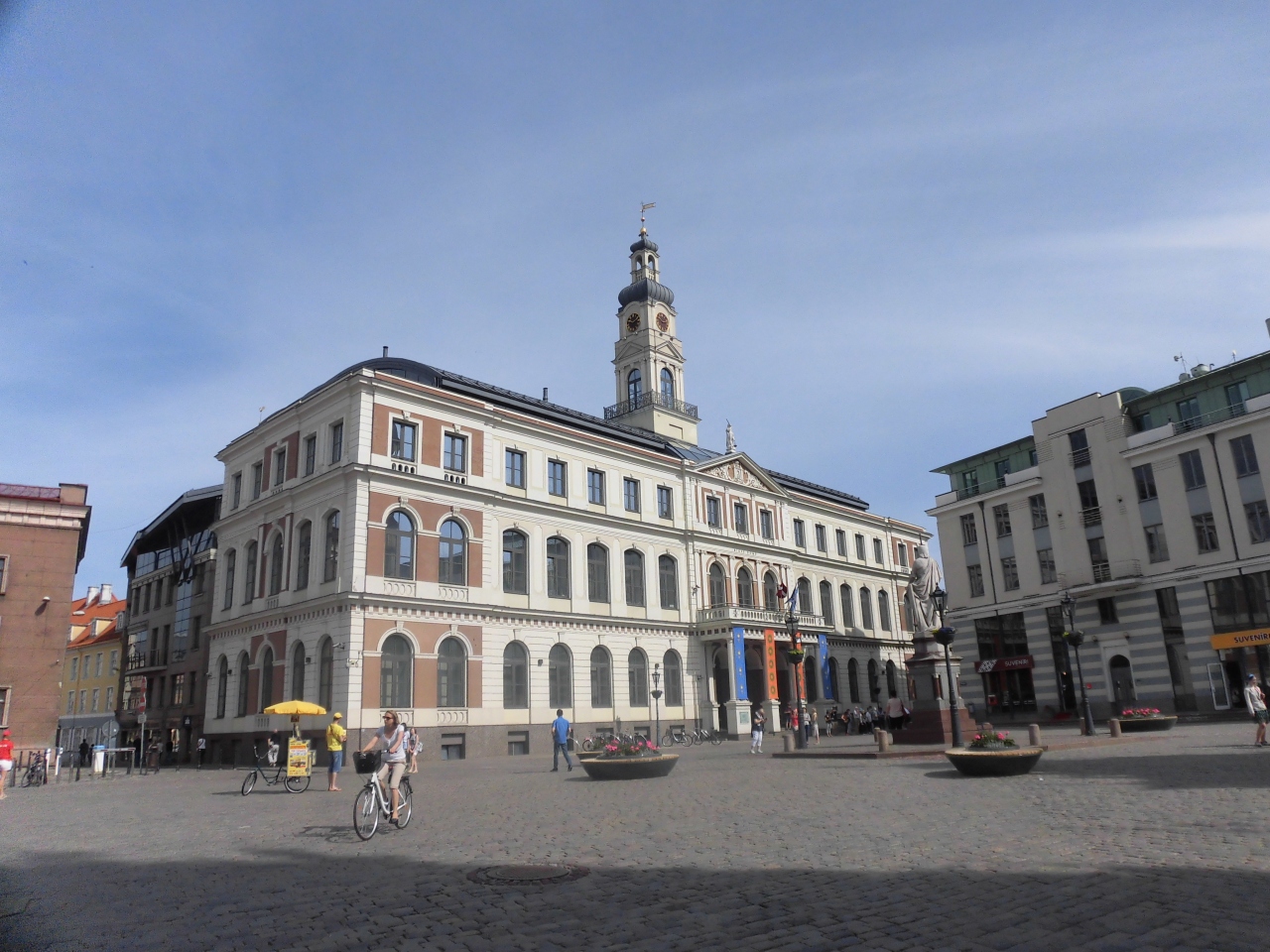 市庁舎は1334年からこの場所にあるそうで、いまだ現役の市庁舎です。前の建物は帝政ロシア時代の1750年に建てられ、第二次世界大戦中にドイツ軍の爆撃で破壊されています。