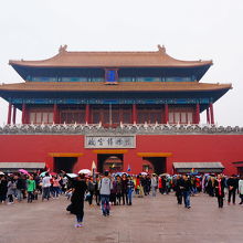 故宮博物院の出口にあたる門です。故宮博物院は一方通行となっており、この門から入場することはできないようになっていました。神武門の道路を挟んで目の前が景山公園という公園になっていて、この公園の山の上から故宮博物院の全景を見ることができます。